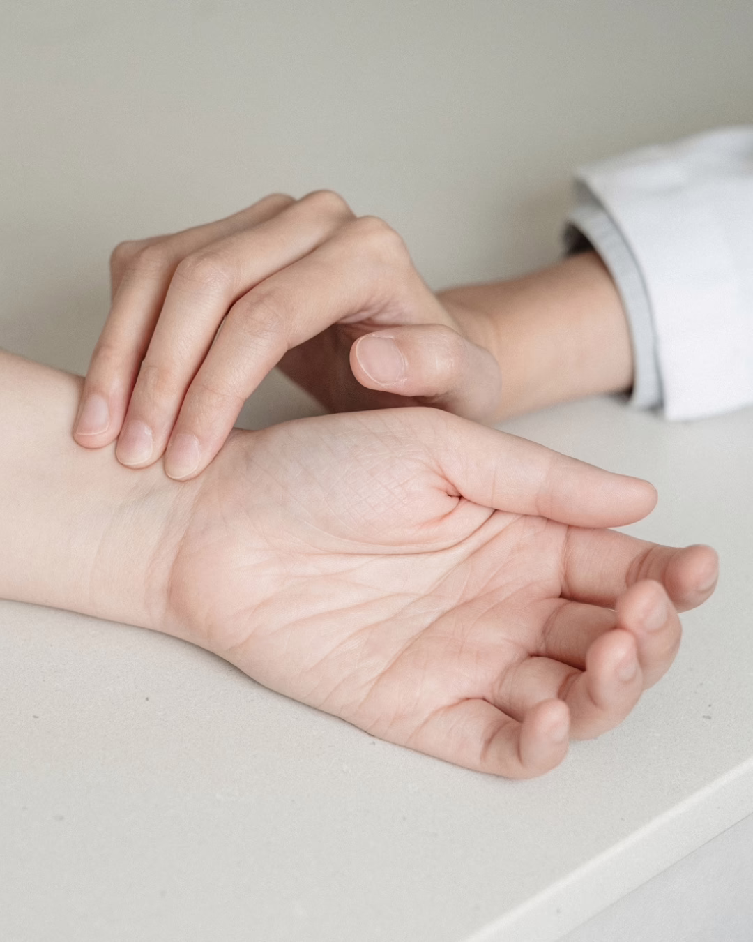 During your consultation, we gently feel your pulse on both wrists—not just to count beats, but to understand how your body is functioning on a deeper level. We examine for: