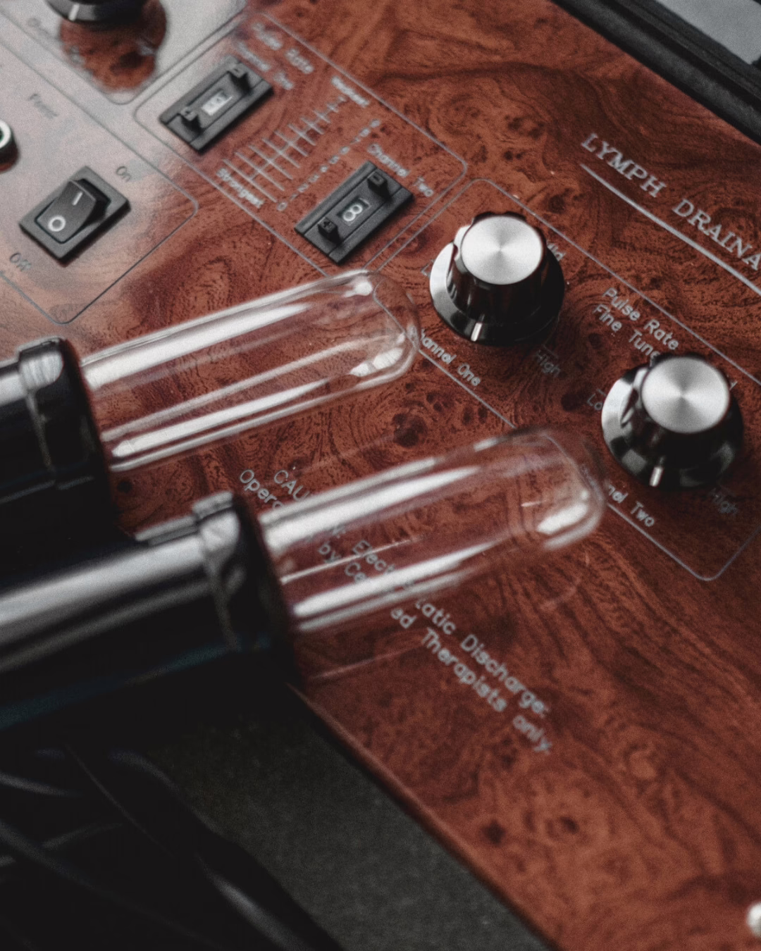 Unlike traditional manual lymphatic drainage (MLD) massages, ELT uses low-frequency electrical currents delivered through specially designed glass probes to encourage lymphatic flow. This helps clear stagnation, remove cellular waste, reduce swelling, and improve circulation, without the discomfort of deep pressure.