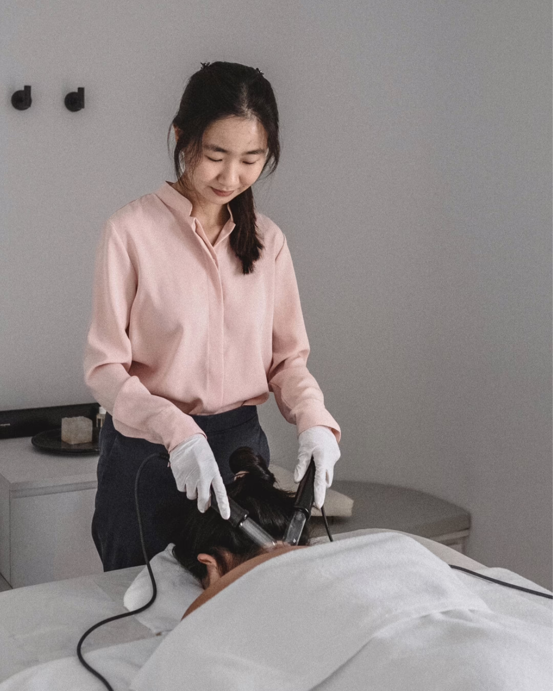 You’ll lie comfortably as your therapist glides specialised glass probes gently along your lymphatic pathways — it’s non-invasive, deeply soothing, and completely pain-free.